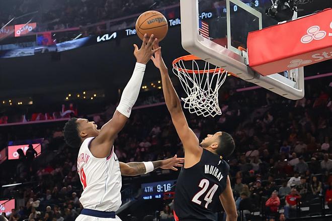 本场比赛中,开拓者的替补锋线新星克里斯-穆雷(Kris Murray)的表现还是相当不错的。穆雷全场出场31分08秒,投篮9中3,三分线外4中0,罚球1中1,得到了7分7篮板6助攻的数据,其中还包括了4个前场篮板,没有失误和犯规正负值则是达到了全场次高的+19。穆雷在进攻端虽然没有展现出自己在外线投篮方面的能力,但是他在前场篮板争抢方面的表现非常出色,他也是在对手内线制造了一定的威胁,而且他在传球和策应方面的表现也是相当不错的。除此之外,穆雷在防守端的表现也是相当不错的,也是给对手制造了一定的麻烦的。穆雷在场上时球队的整体局面相当不错,这也能够体现在他超高的正负值上,他也是为球队的胜利做出了不小的贡献。