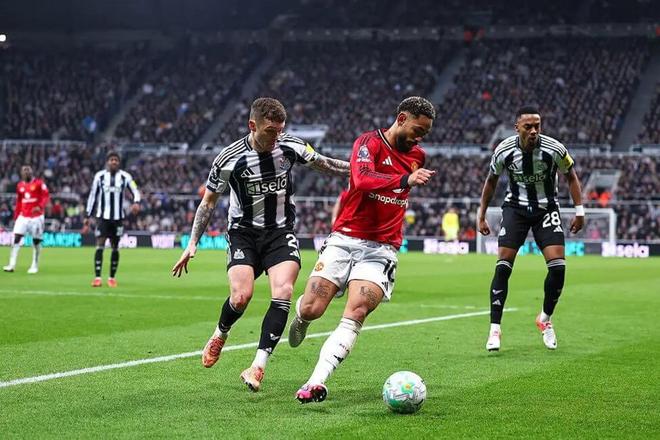 这与去年10月客战利物浦时形成鲜明对比。在安菲尔德,曼联在争抢高空球第一点、第二点时结构清晰,最终2-1取胜。而在圣詹姆斯公园,斗志昂扬的纽卡斯尔从一开始就掐断了曼联的所有快速推进。