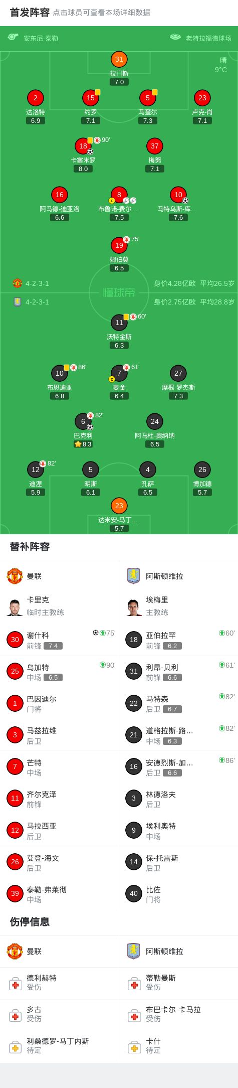 第64分钟,巴克利禁区内推远角得手,经VAR确认进球有效,维拉1-1扳平曼联!